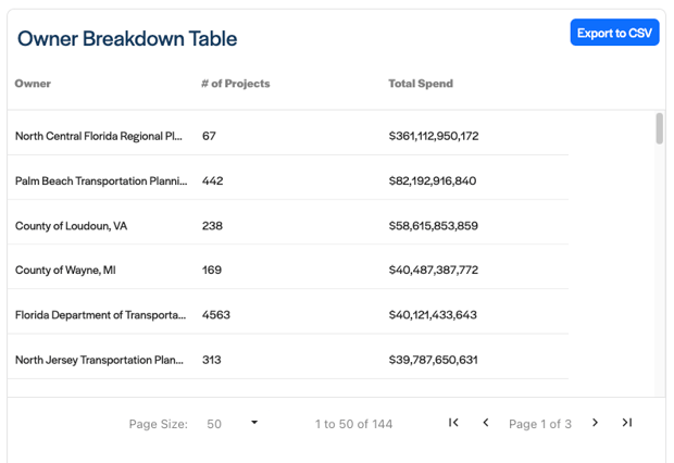 Select the “Export to CSV” button to instantly export your capital projects data.