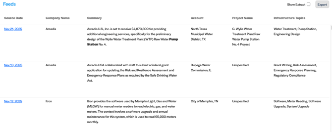 Infrastructure Topic: Filter mentions by sector (e.g., Wastewater, Transportation) to ensure you only see opportunities relevant to your expertise.